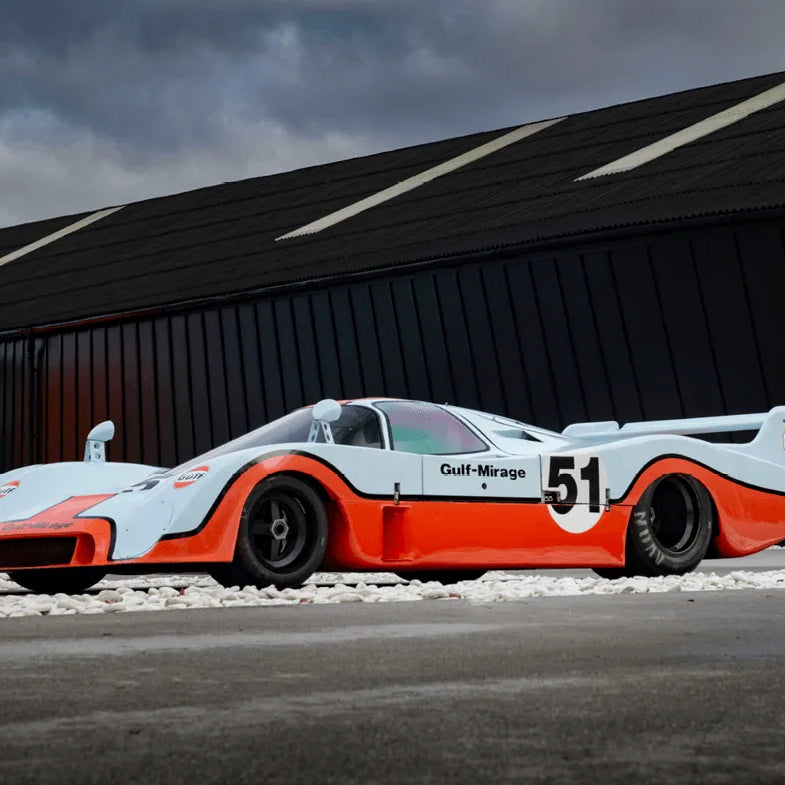 El equipo continuó su racha con el 917K, que dio a Derek Bell su primera victoria con Gulf (1000 km de Buenos Aires). El mismo año, la película “Le Mans”, protagonizada por Steve McQueen, otorgó fama global a la librea Gulf: el actor condujo el mítico Porsche 917 #20 azul y naranja, convirtiendo esa imagen en leyenda cinematográfica.