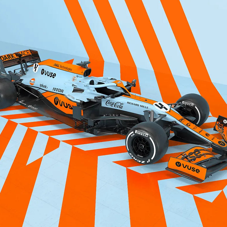 En el Gran Premio de Mónaco 2021, McLaren lució una livery Gulf especial, homenajeando una de las decoraciones más emblemáticas de la historia del automovilismo.