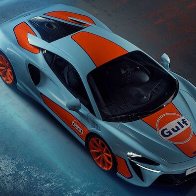 Gulf lanzó ediciones exclusivas junto a McLaren Automotive y Everrati: los McLaren Artura, Elva y el Porsche 911 (964) eléctrico restaurado, todos con los icónicos colores azul y naranja.