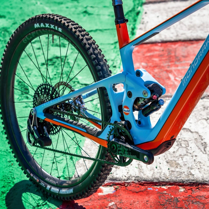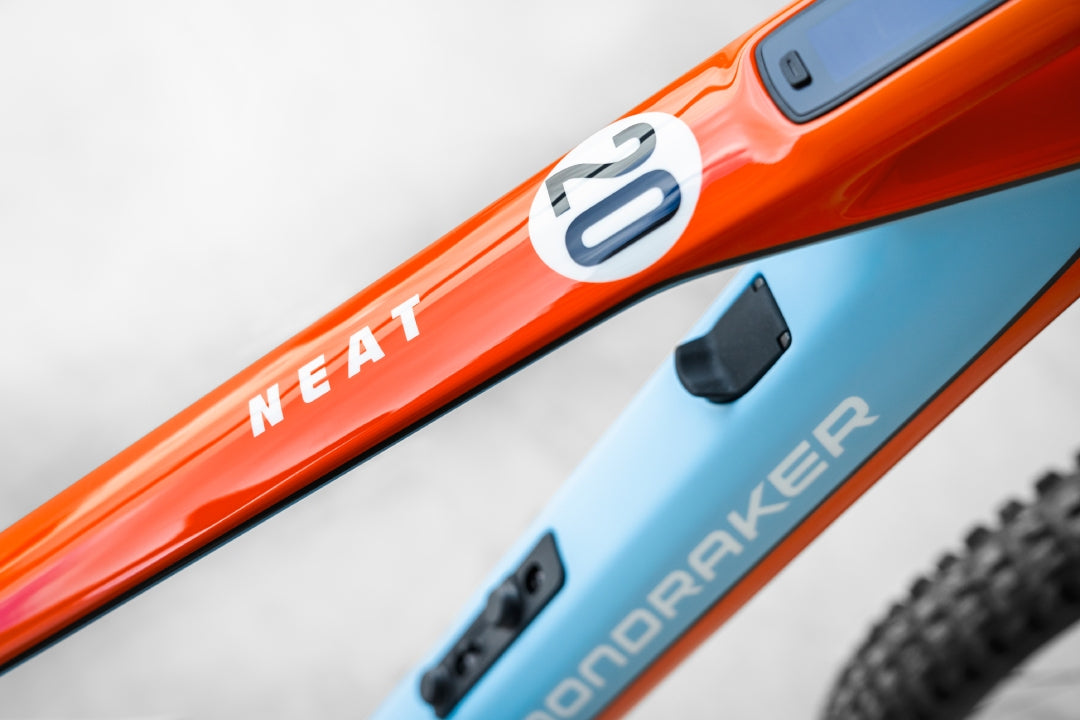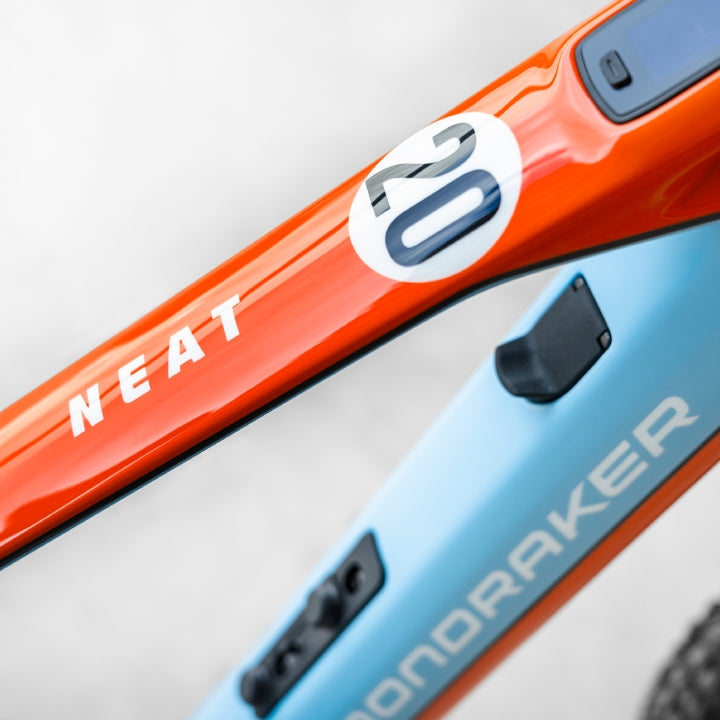 Bienvenidos a la Mondraker Neat Unlimited Gulf Edition. La Mondraker Neat Unlimited Gulf Edition surge de la fusión entre el mundo del motorsport y el mountain bike. Esta e-bike de Enduro combina los emblemáticos colores de Gulf con la tecnología avanzada del proyecto NEAT de Mondraker.