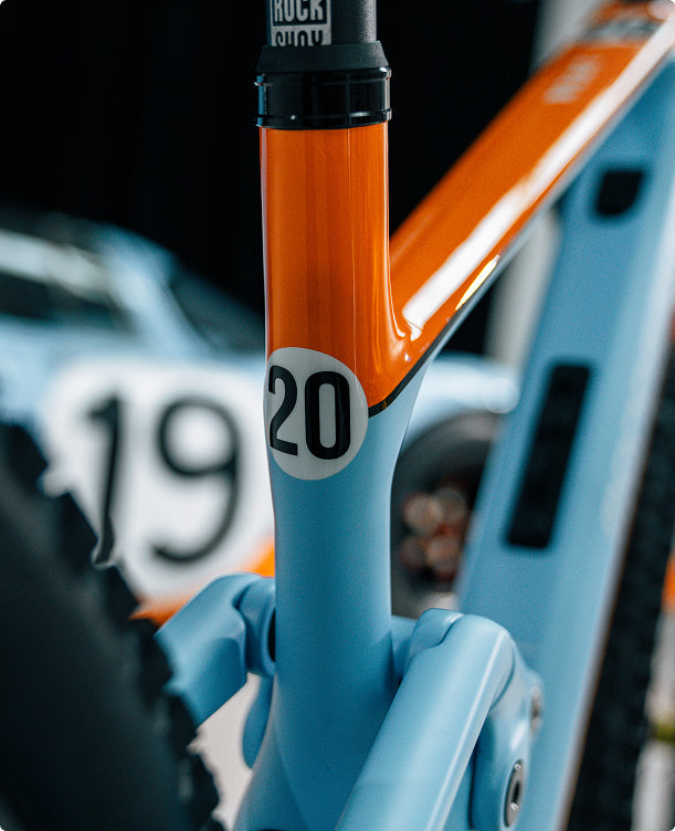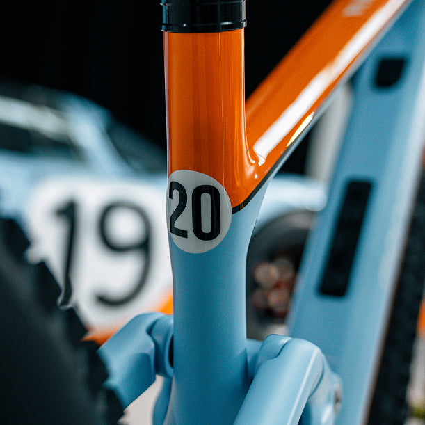 Esta es la característica más especial y distintiva.Las 50 unidades han sido pintadas a mano, inspiradas en uno de los liverys más icónicos de la marca. El dorsal elegido es el número 20 y la decoración de colores refleja fielmente el emblemático diseño de uno de los coches con los que se ganó la mítica carrera 24h de LeMans: el brillante naranja contrasta con el mate del icónico azul celeste, transmitiendo adrenalina, pasión y velocidad en esta e-bike exclusiva.